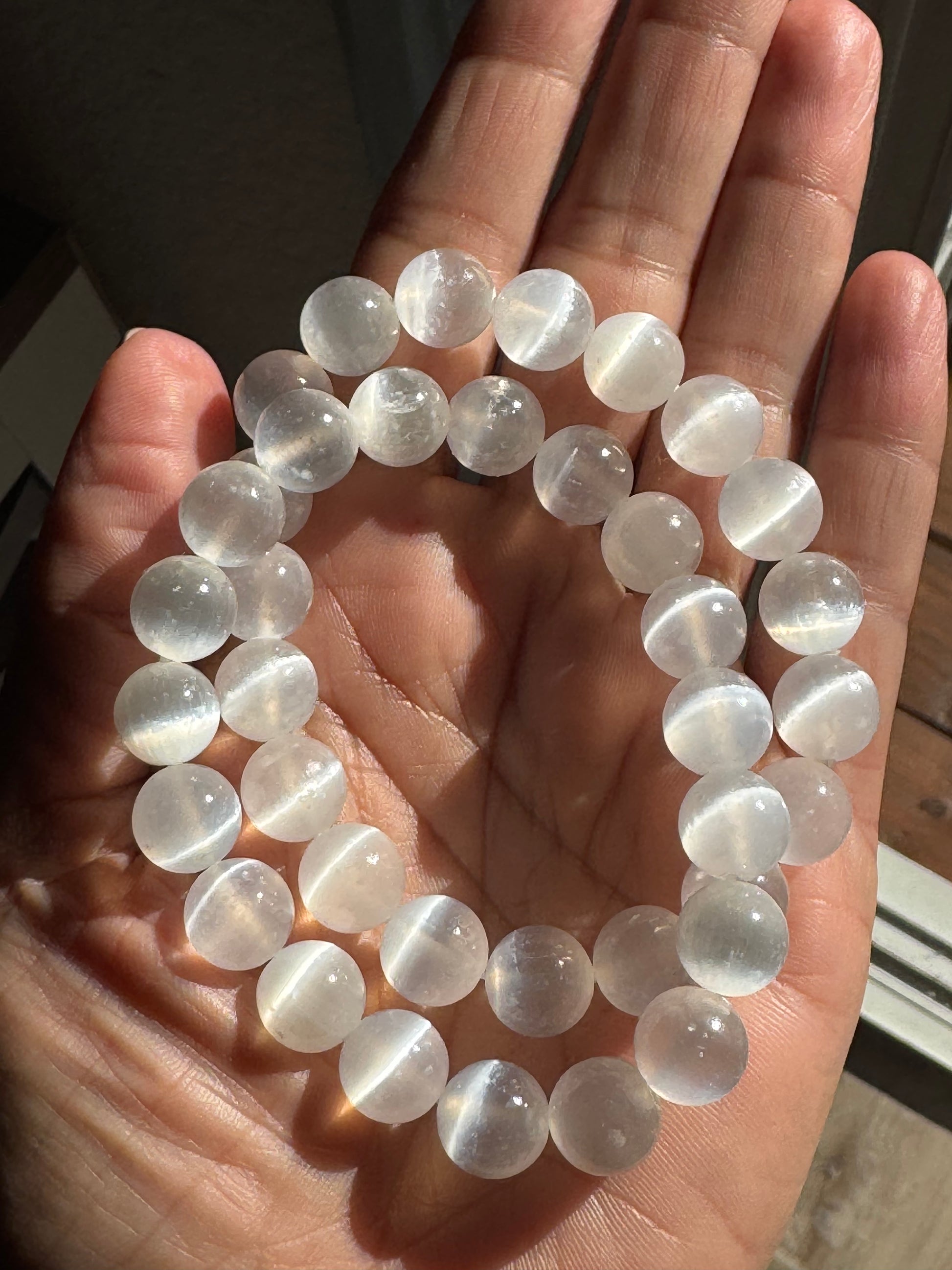 Known for its powerful cleansing and protective qualities, Selenite helps keep your vibration light, clear, and aligned. It creates a sense of peace, clarity, and energetic openness, making it a beautiful ally for daily wear, meditation, or spiritual practice.